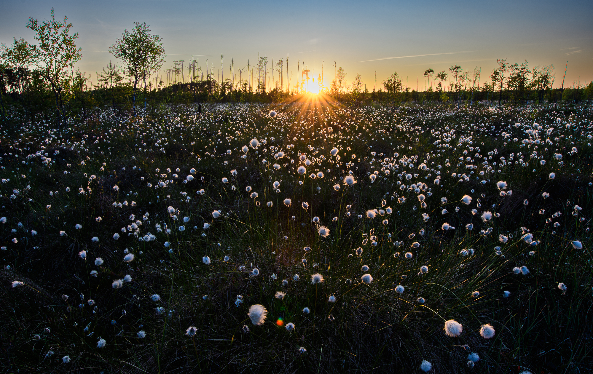 Pehmed valged tupsud ulatuvad peaaegu et silmapiiri taha. Õhtuvalgus lainetab üle lilleaasa ning muudab kevade lõpus raba ilme hoopis teistsuguseks.